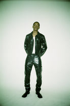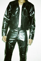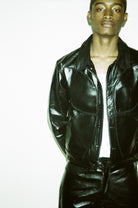 THE LEATHER TRUCKER IS A STRUCTURED, YET RELAXED CUT THAT IS HAND MADE FROM PREMIUM, DEADSTOCK LEATHER ADDING TO ITS UNIQUENESS AND HIGH QUALITY.
